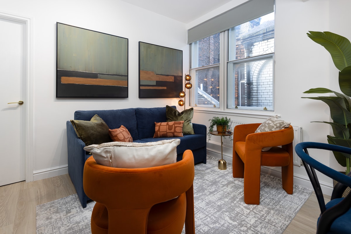 The spaceThis modern apartment is situated in the heart of Liverpool City Centre. Harrington Chambers is a Grade II listed building known for its distinctive curved corner and stucco facade - a cornerstone of Liverpool's Victorian commercial architecture.